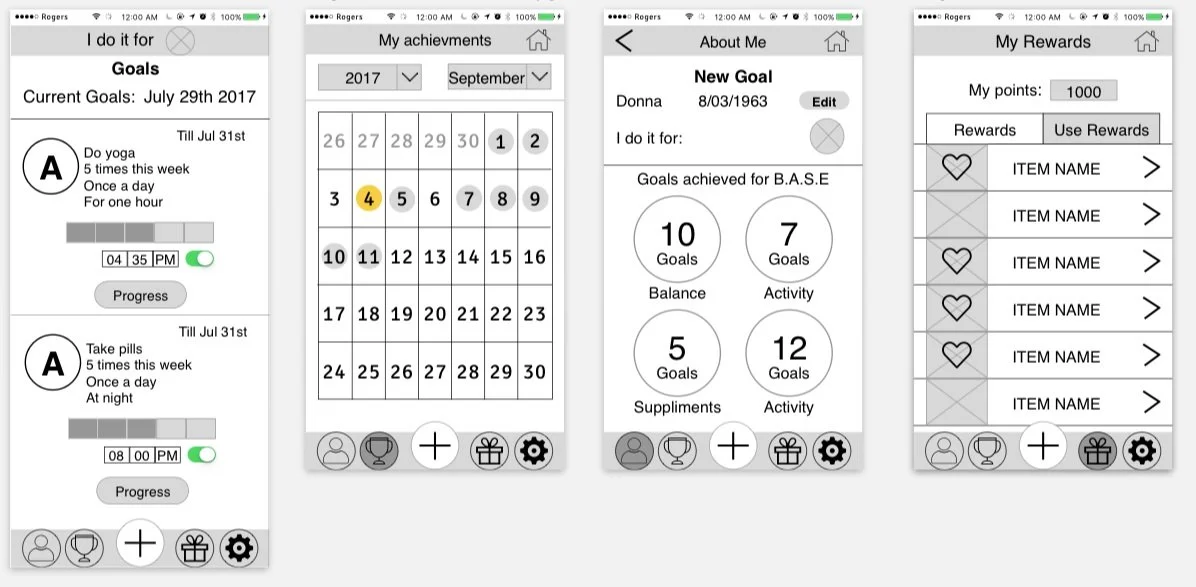 These were the same primary goals set by SierraSill in 2012 with their original BASE Wellness app. Now our objective was to take these goals and rethink the BASE app to be more successful in keeping users engaged.