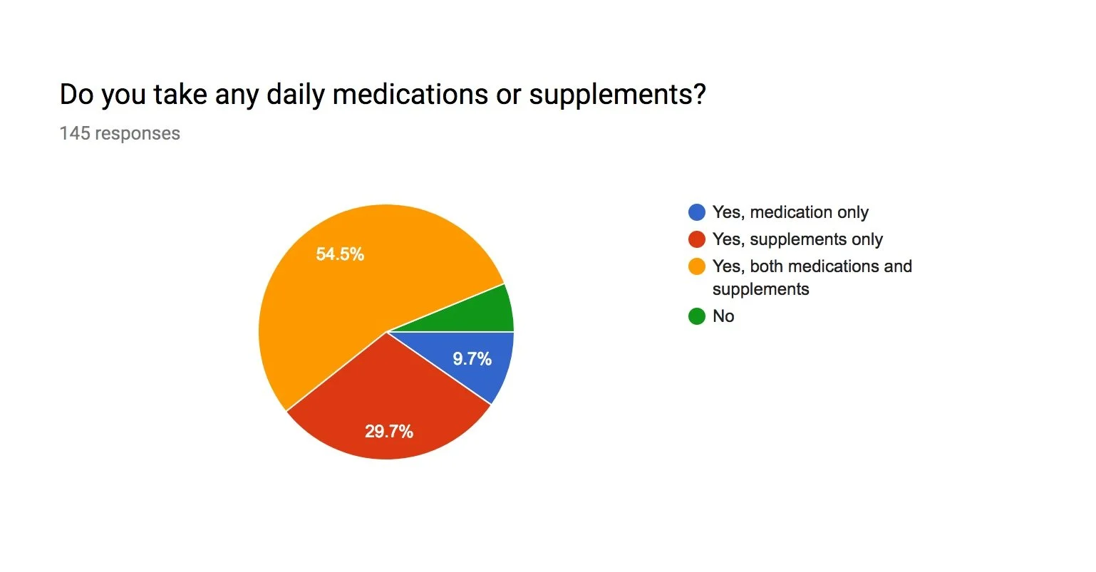 With our knowledge of the competitors, we then began to research on our primary users. We conducted in person interviews and sent out an online survey though SierraSil’s email list. We discovered that about 84% of respondents were already taking supplements and that nearly 65% of our users were between 60-70+ years of age. Our first realization was that those in the 70+ age category may not be tech savvy or confident in their ability to navigate apps. With this in mind we made a concerted effort to keep simplicity as the key to users being able to adopt and enjoy the app. Additionally, with so many potential users already taking supplements meant the BASE app was a prime pipeline for SierraSil to stay engaged with its customers. SierraSil was prepared to offer free products as rewards for those who used their app. Our plan was to have users create one goal per week, record their progress for points and finally redeem accumulated points for products. This approach meant we could hit all our goals for the project.